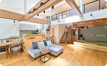 家族が長い時間を過ごす、大切なマイホーム。美しい外観、過ごしやすい動線・間取りやメンテナンス性だけでなく、心身ともに健やかであれることを大切にしています。ご家族構成や大事にしたいポイントなど、お客様との対話を丁寧に重ね、未来が輝く住宅を築きます。
